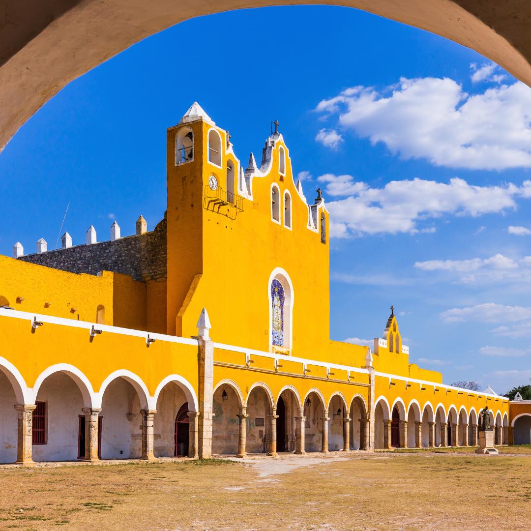 Conocido como la Ciudad Amarilla, es uno de los Pueblos Mágicos más emblemáticos de Yucatán. Destaca por sus calles y edificios pintados de amarillo, que le dan una identidad única Izamal es ideal para caminar, conocer su historia, disfrutar de su gastronomía y vivir un ambiente tranquilo y tradicional.