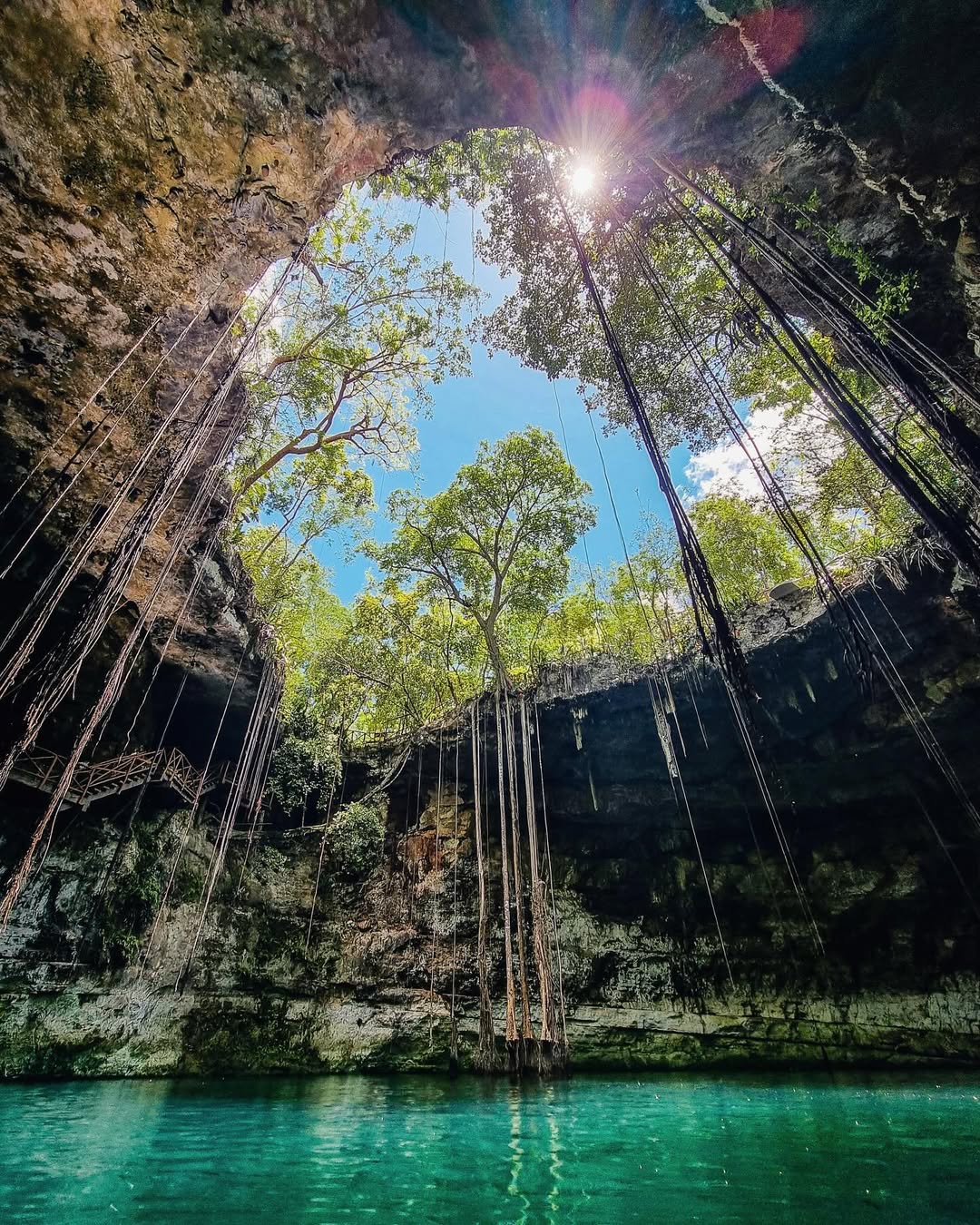 Alrededor de la ciudad de Mérida hay muchos cenotes naturales formados por el colapso del suelo de piedra caliza, con aguas cristalinas perfectas para nadar, hacer snorkel o simplemente disfrutar del entorno natural. Cada cenote es diferente: algunos son abiertos, otros tipo cueva, pero todos ofrecen una experiencia mágica e imperdible durante tu visita.